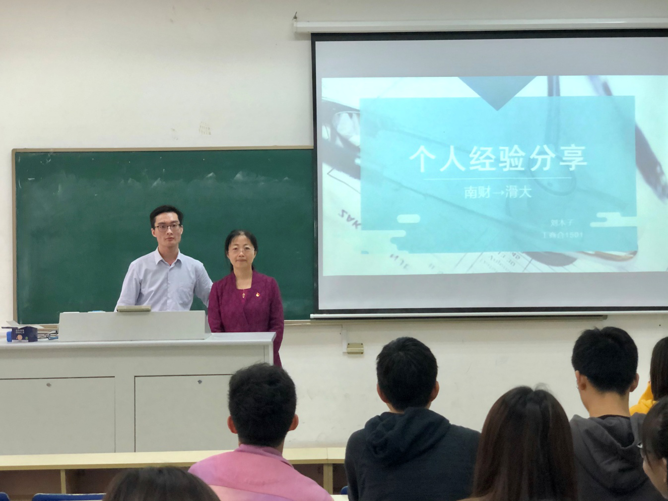 为帮助工商管理(环境商务)专业员工更好的了解本专业发展的历程和前景,预知今后赴滑大如何才能更好的继续学业与生活,2019年10月14日上午yd222云顶线路检测为工商合1801班在德济楼105、下午为工商合1901班在德经楼108教室举办了“学长经验分享”主题班会,该班会由辅导员喻洁老师主持, 15级优秀应届毕业生刘木子主讲。