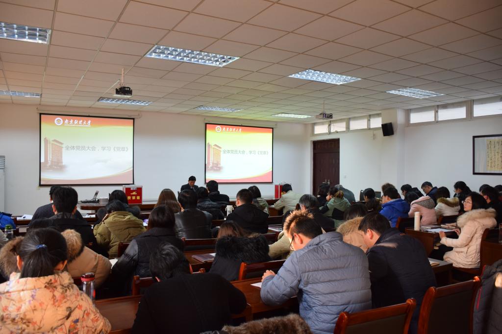 会上,万绪才书记带领全体党员围绕党章修改的背景、新党章修改内容以及党章修改的意义等全文学习了新的《中国共产党章程》,万书记指出,“两学一做”其中之一就是学习党章,党章作为一个政党为保证全党在政治上,思想上的一致和组织上,行动上的统一所制定的章程,是政党的宗旨和行为规范。所有党员同志都要认真研读新党章,认真学,反复学,细心体会,深入思考,自觉按照新党章的规定严格要求自己,坚定理想信念,提高政治觉悟,不忘初心、牢记使命,爱岗敬业、恪尽职守,为迎接即将到来的校第三次党代会而贡献自己的力量!