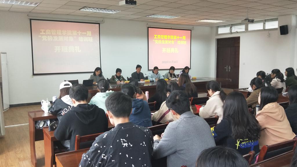11月16日下午,公司分党校第十一期“党的发展对象”培训班开班典礼在仙林校区德济楼408室举行。公司党委书记万绪才、党委副书记杨华、公司党务组织员嵇杭、团委书记曾慧娟、本科生支部书记冯玲和邱祥霞老师,以及全体48名学员出席了开班典礼。开班典礼由公司党委副书记杨华主持。