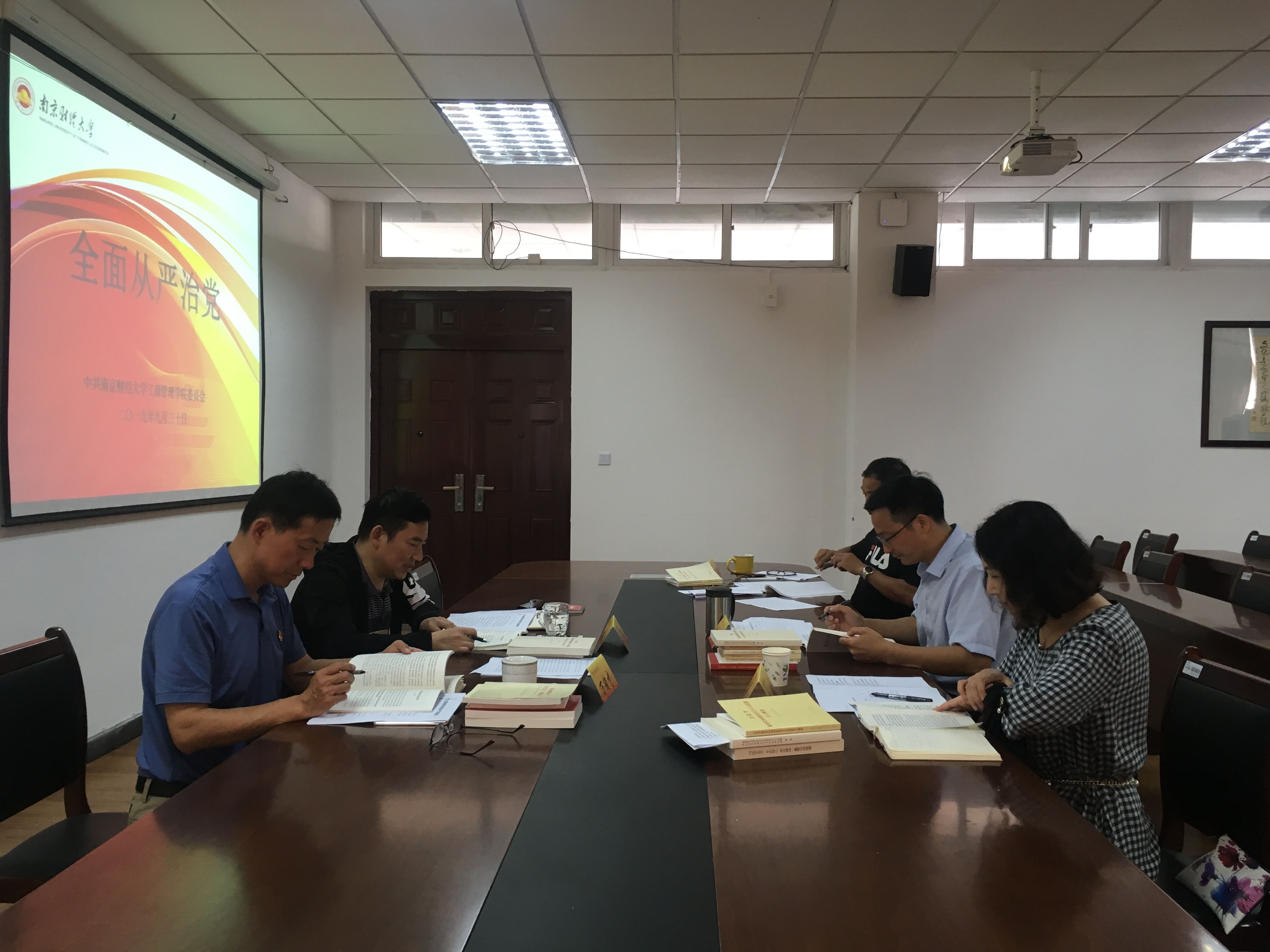 随后,杨华副书记带领大家就《习近平新时代中国特色社会主义思想学习纲要》、《习近平关于“不忘初心、牢记使命”论述摘编》、《做到“两个维护”》等学习读本和《十九大报告》中关于“全面从严治国”主题相关论述内容进行学习,并开展讨论。