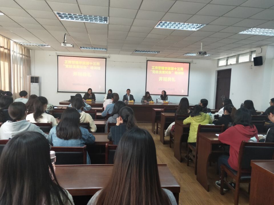11月15日下午,公司分党校第十三期“党的发展对象”培训班开班典礼在仙林校区德济楼408室举行。公司党委书记万绪才、本科生第一党支部书记冯玲、本科生第二党支部书记赵菲、研究生党支部书记桂竹妍,以及本期培训班44名学员参加了开班典礼。开班典礼由公司党务组织员、研究生党支部副书记、本期培训班班主任邱祥霞主持。