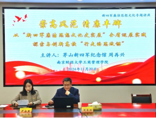 为将廉洁思想和红色文化融入高校思政教育过程中,培养具有社会责任感和历史使命感的新时代青年,yd222云顶线路检测于11月20日在德济楼408会议室举办《崇高风范 清廉丰碑——从“新四军廉洁思想文化史实展”全省巡展实践探索创新高校“行走的思政课”》主题讲座。本次讲座由茅山新四军纪念馆副馆长、副研究员周再兴主讲,yd222云顶线路检测全体教师党员以及灯塔党支部全体员工党员参加了本次讲座。讲座由公司党委副书记尹海燕老师主持。