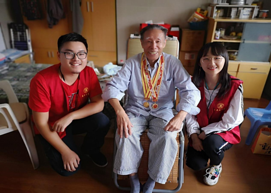 同学们登上栖霞山,将落叶制作成标本,作为重阳佳节的礼物,赠送给颐鹤老年公寓的老人们,与老人们共度佳节,传承敬老爱老的传统美德。活动过程中,一位参加过抗日战争的老兵向同学们讲述了抗战时期的峥嵘岁月,并向大家展示了新中国成立70周年纪念章。老爷爷用亲身经历激发了青年老员工的爱国热情,鼓励青年学子勇立潮头,做新时代的奋斗者,担负起振兴中华的重任。