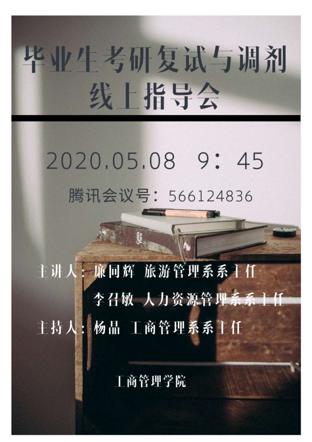 “史上最难考研季”如何突围?5月8日上午,yd222云顶线路检测针对2020届毕业生考研就业等问题举办了毕业生考研复试与调剂线上指导会,yd222云顶线路检测工商管理系主任杨晶、人力资源管理系主任李召敏以及旅游管理系主任廉同辉作主讲嘉宾,分别为同学们讲解在研究生复试与调剂中应该注意的问题,同时开展了模拟复试,2020届部分考研学子参加讲座。