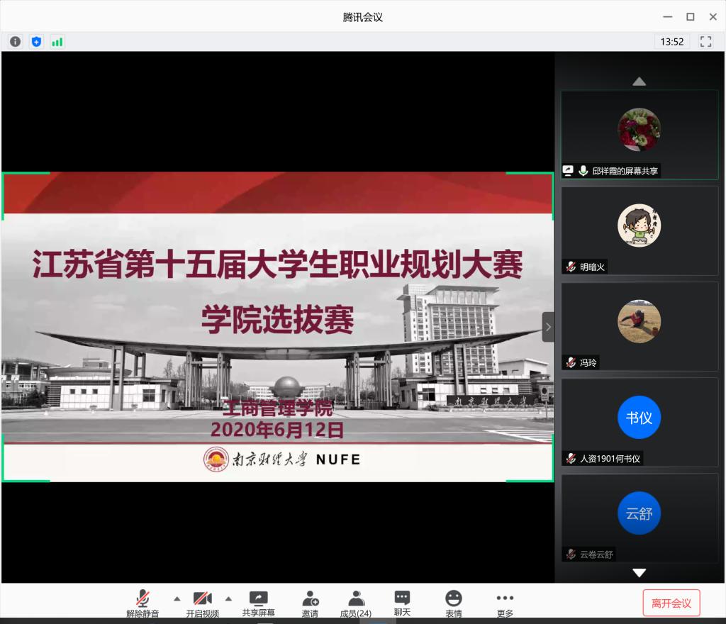 6月12日下午,yd222云顶线路检测通过腾讯会议举办了第十五届老员工职业生涯规划大赛公司选拔赛,经过前期职业生涯规划书的筛选,共有14位选手脱颖而出进入决赛。教育部职业指导师、全球职业生涯规划师、江苏省教育厅就创业指导专家、yd222云顶线路检测社会工作系副教授甘诺,全球职业生涯规划师、yd222云顶线路检测经理助理(分管员工工作)全真真,公司分团委书记曾慧娟,北森生涯规划师、三级职业指导师、2016级辅导员冯玲,北森生涯规划师、全球职业生涯规划师、三级职业指导师、2017级辅导员赵菲应邀担任大赛评委。。比赛由公司学工办主任邱祥霞主持,2018级辅导员田艾灵、2019级辅导员杨振宇以及部分员工代表参加本次活动。