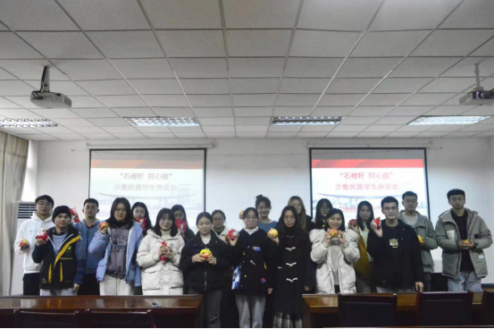 座谈会上公司为参会的同学赠送石榴,表达了希望各族员工要像石榴籽那样紧紧团结在一起的心意。