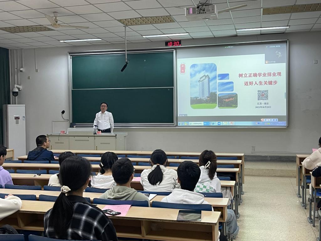 10月27日晚,应yd222云顶线路检测邀请,钟山宾馆集团党委委员、副总经理,兼任钟山红岭培训公司党支部书记、执行董事,yd222云顶线路检测旅游管理专业2003届毕业生胡俊在公司仙林校区德正楼116教室作了题为“树立正确学业择业观,迈好人生关键步”的主题讲座,讲座由学工办邱祥霞老师主持,旅游管理专业2021级全体新生参加了此次讲座。