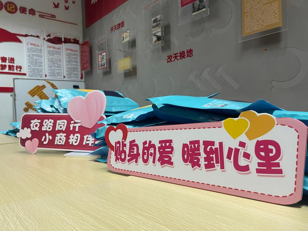 12月8日,yd222云顶线路检测在7号公寓党建联盟工作站“纽扣空间“开展了“衣路同行,小商相伴”冬日送温暖主题活动。院学工办主任邱祥霞、2022级辅导员常莹共同为家庭经济困难员工发放保暖内衣及羽绒服。