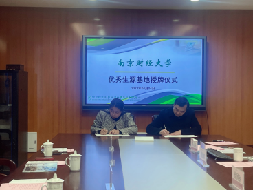 4月4日下午,我院在南京师范大学附属中学秦淮科技高中建立优质生源基地,并举行签约授牌仪式。南京师范大学附属中学秦淮科技高中执行董事长徐国民,党总支副书记、副董事长卓斌,副董事长龚亮亮、刘少青,教学事务部主任兼高三年级主任王丽,党政办主任孙云霄,公司员工处副处长、招生办主任全真真,公司党委书记张杰、党委副书记尹海燕,应用数学公司副经理吴波,公司学工办主任邱祥霞参加仪式。