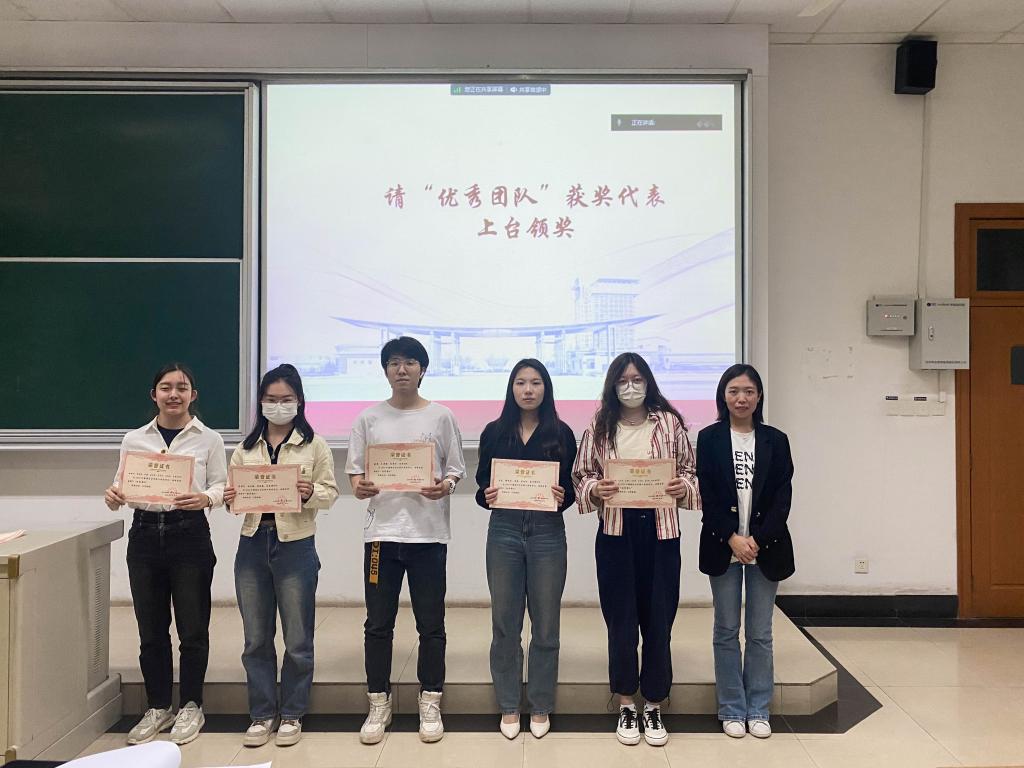最后,暑期优秀社会实践团队代表钱净婷与暑期社会实践优秀调研报告代表杜雨露、金曦涵上台展示了各自团队的实践过程与成果,就选题、调研机构、团队组建和注意事项等方面为同学们进行一一讲解,对同学们开展实践活动指明了方向。