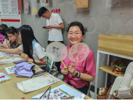 活动伊始,赵雪老师首先对活动的内容进行介绍,指导同学们根据各自的民族特色,将不同民族的服饰花纹或标志,通过画、描、涂的方式,绘制在团扇上,形成一幅幅精美的作品。同学们积极参与其中,围绕着“青年话民俗,共绘同心圆”的主题在团扇上描绘出多样的民族样式,有白族、苗族的特色服饰花纹,有维吾尔族的石榴花……这些独具特色的团扇画作,不仅表现出了少数民族学子对传统文化的浓厚兴趣,更突显了各民族团结一心的深厚友谊。