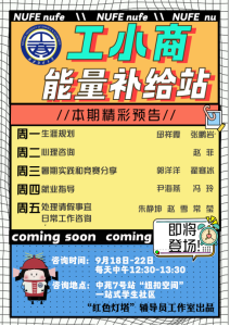 周五则是针对周末请假较为集中的情况,常莹、赵雪、朱静坤三位辅导员老师利用中午的时间集中为周末外出的同学处理请假事宜,并对PU申请及素拓奖学金评选等问题进行答疑。至此,“工小商能量补给站”第一期圆满落幕。
