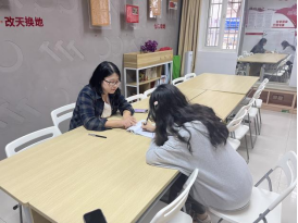 周二,心理辅导员赵菲开展一对一心理咨询,员工主动预约,就个人在人际关系、学业定位、职业发展上存在的困惑向老师求助,经过一个小时的沟通交流,员工情绪得到有效舒缓。