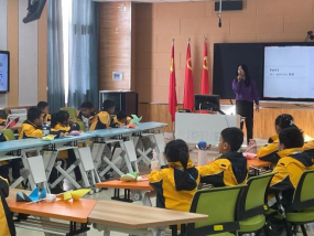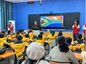 活动伊始,小朋友们来到博文楼智慧教室,由南财职工为同学们介绍自己家乡的语言、美食和风景名胜等文化特色。小朋友们认真倾听,热情回应并主动学习“你好”、“谢谢”的外语发音,了解到了南非、韩国、格鲁吉亚等国家的地域文化和风土人情,深切感受到话语间传递的文化多样之美。