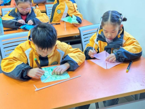 志愿者们以羊续悬鱼的故事为引入,向五年级3班的小朋友们介绍了中国货币的起源与发展和剪纸艺术,用南财深厚而独特的文化气息激发着同学们的热情。在共同剪绘古铜币和南财校徽的过程中,小朋友们都全神贯注、小心仔细地剪裁着手中的图案。很快,在双手与巧思的碰撞下,小朋友们将一个个精致的校徽与古铜币举起,脸上洋溢着自信的笑容。在锻炼动手能力的同时,同学们对于货币文化有了更深的认识。