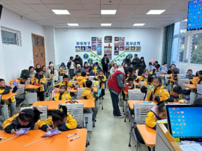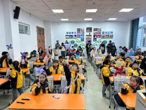 一年级9班的40名小朋友在志愿者的带领与协助下,绽放创造与想象,折叠出五颜六色的纸风车,并在风车上绘出自己喜欢的图案,一个个独一无二的纸风车都寄予着每位同学对未来的美好畅想。其中,四位小朋友积极上台发言,阐述自己的图案内涵,展现出小朋友们朝气蓬勃的精神风貌。