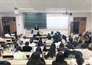 活动伊始,由校保卫处副处长、人民武装部副部长潘雪峰为同学们介绍南京市征兵工作的相关情况与政策。潘处长向同学们详细讲解了兵役登记、应征报名的时间、入伍基本条件以及应征入伍程序。随后,潘处长从老员工参军入伍优待、从军发展路径、经济补助、定向招录这四个方面让同学们更加深入地了解到国家对于老员工参军的政策支持。