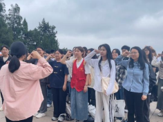 接着,同学们沿着392级石阶拾级而上,每一步都仿佛在触摸历史的脉络,感受那份深沉而崇高的民族情怀。登上平台后,眼前蓝瓦白墙,气势恢宏,庄重典雅。同学们在孙中山先生祭堂前面向团旗,右手握拳,庄严宣誓。坚定的誓词传递出同学们对先烈的敬意、对理想的追求和对祖国的热爱。