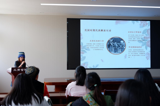活动伊始,来自哈萨克族、畲族、朝鲜族和回族的员工代表分别介绍了自己的民族特色。他们穿着自己的民族服饰,介绍了自己的民族美食、习俗、文化和民族英雄故事,让同学们对不同的少数民族有了更加深刻的了解。