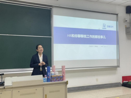 员工郭婧蓉从一名有着深厚的专业素养和丰富的实践经验的HR的视角对同学们进行就业指导。她通过解析本科生与研究生两个阶段的择业情况,并结合人力资源管理专业特点与优势,用幽默风趣的语言为在场同学提供了求职建议。其中,她着重介绍了面试的相关技巧,希望能够帮助同学们在日后的求职过程中更加轻松地应对不同的面试形式。此外,她还设置了一些问题,同学们踊跃回答,领取了各种精美的礼品。