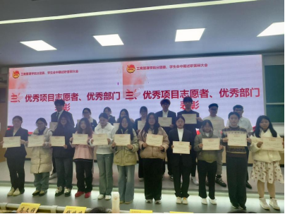 答辩结束后,主持人宣读了优秀项目志愿者和优秀部门的获奖名单,yd222云顶线路检测分团委书记赵雪老师以及主席团成员为他们颁奖并合影。