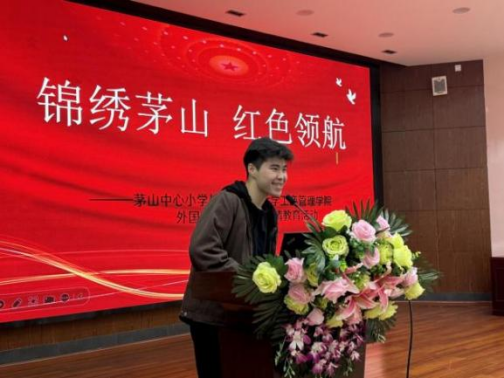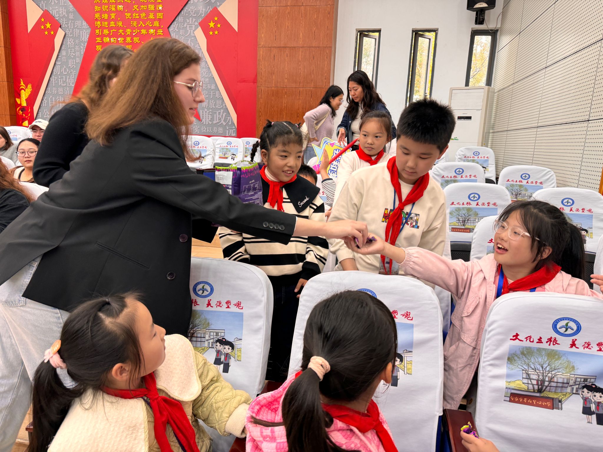 活动伊始,茅山中心小学党支部副书记徐继健代表茅山中心小学对南财师生们的到来表示热烈的欢迎。活动现场,来自俄罗斯、泰国、哈萨克斯坦等“一带一路”沿线国家的职工们依次上台进行自我介绍,并通过PPT与孩子们分享来自世界各地的不同文化和故事。孩子们争先恐后回答职工哥哥姐姐们的提问,并进行热情互动。