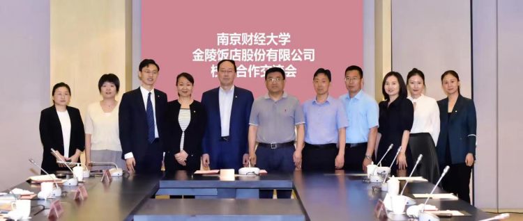 交流会上,乔均副董事长对金陵饭店股份有限公司多年来给予公司事业发展的关心和支持表示衷心感谢,并介绍了公司的发展历史、院系设置、专业特色和校企合作等情况。他表示,金陵饭店股份有限公司是中国旅游业改革开放的窗口,也是中国服务业的品质标杆,南财大的旅游管理专业在全省也名列前茅。近年来公司吸收了公司一批优秀人才,公司各企业高层管理人员也成为南财大的兼职教授和硕士生导师。希望双方今后在实习就业、产学研课题研究、定制化人才培养等方面开展更多形式的交流与合作,实现校企资源的紧密结合和优化配置,以达到相互促进、协同育人,建立“产学研一体化”实践平台,打造产业与教学深度合作的样板典范,发挥行业的示范引领作用,为国企新时期产业结构升级、连锁化经营和高质量发展培养高素质、高技能的应用型人才。