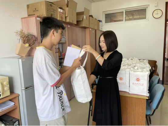 新生辅导员赵菲老师为新生送上“亮亮包”