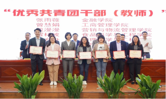 公司团委书记曾慧娟老师(前排右二)领取“优秀共青团干部”奖状