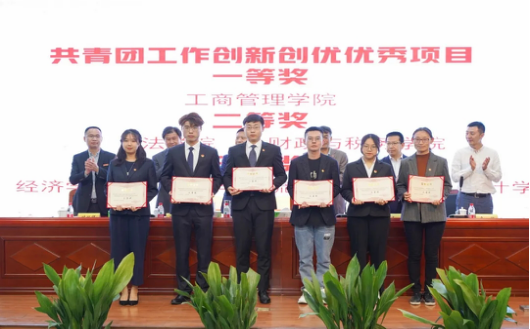 公司人资1701曲晓波同学(前排左三)代表公司领取“共青团工作创新创优优秀项目”奖状