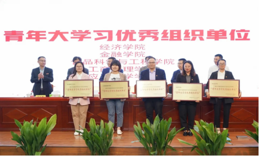 公司团委书记曾慧娟老师(前排左二)代表公司领取“青年大学习优秀组织单位”奖牌