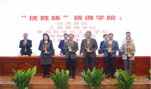公司党委书记杨林老师(前排右二)代表公司领取“优胜杯”