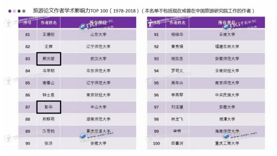 公司教师入围1978-2018“旅游论文学术影响力Top100”和“旅游论作者学术影响力Top100”