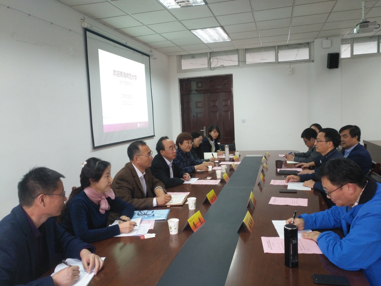 座谈会上,杨林经理首先致欢迎词,并从学科专业、团队力量、科研与社会服务、国际化合作等方面介绍了公司基本情况,副经理奚国泉介绍了公司专业课程建设情况。王士勇经理对公司的热情接待表示感谢,并介绍了青海师范大学经济管理公司的历史沿革与发展现状、团队力量、教学科研等情况。之后,双方就团队建设、人才引进与培养、课程设置、实验室建设、办学理念等方面分享了各自的经验与互动讨论,并表达了在未来进一步交流合作的意愿。