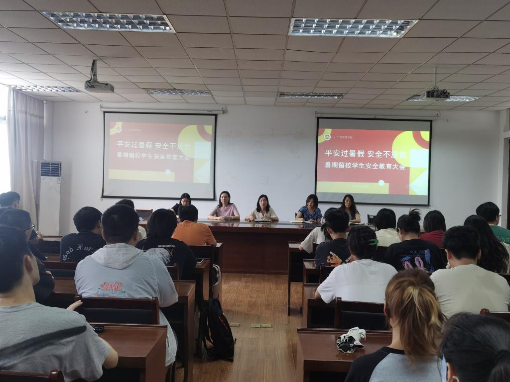 会议中,尹海燕副书记就消防安全、交通安全、防诈骗安全、饮食安全和出行、防溺水安全六个方面进行了说明,并强调暑假期间同学们要自觉遵守公司留校规定,严格落实请销假制度,在校期间务必做好自身安全防范工作。邱祥霞主任提醒同学们要加强沟通意识,保持电话畅通,出现问题第一时间与辅导员老师联系。