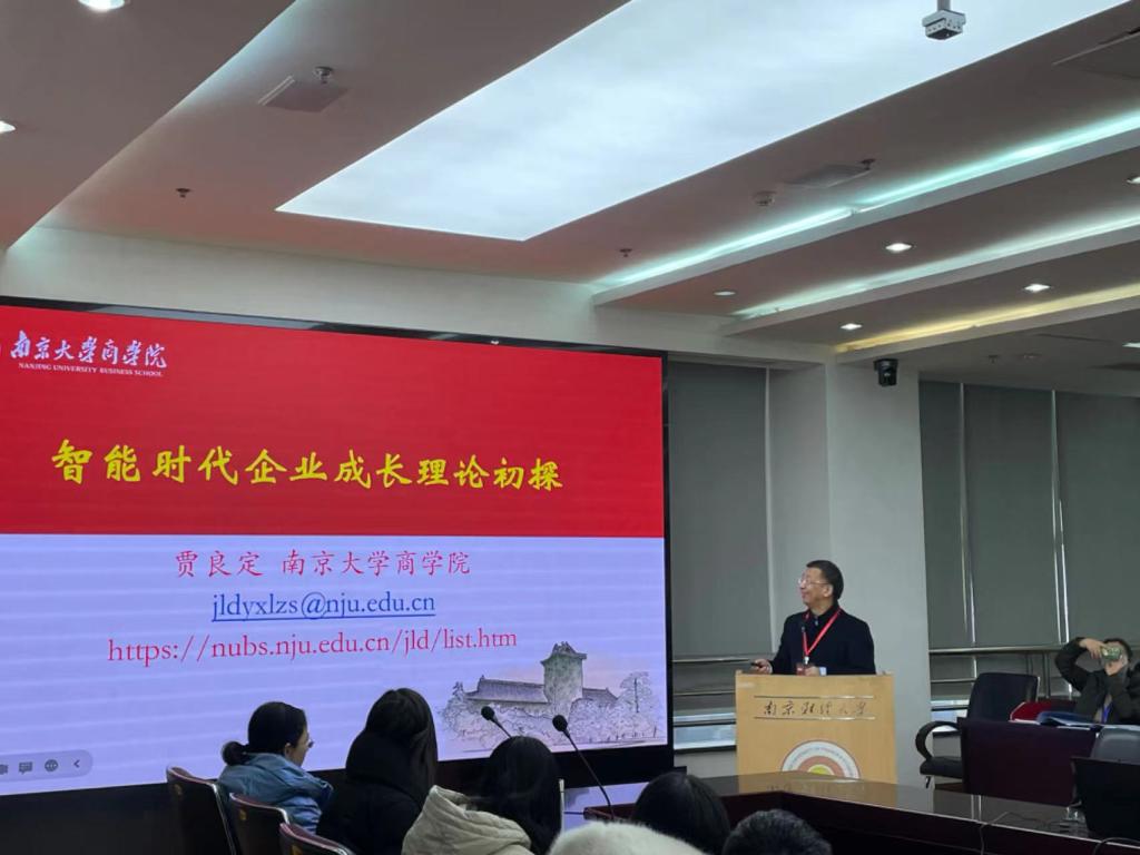 贾良定教授作了题为“智能时代创业成长理论初探”的报告,详细讲述了自己对6家中国企业的案例研究,识别案例企业“从无到有”的前因和机制,从而形成发展企业成长过程模型,即企业成长本质上是“从无到有”、“从小有到大有”的过程。将此过程与智能时代相结合,贾良定教授特别指出,在智能时代,企业家要与AI共同发现,管理者要与AI共同实现。