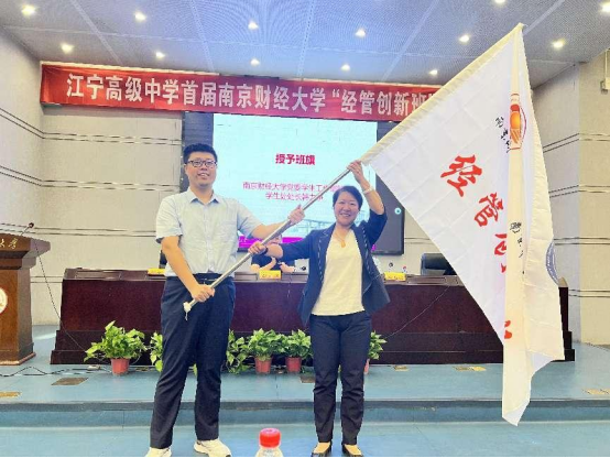 仪式最后,韩力争处长为“经管创新班”授班旗。