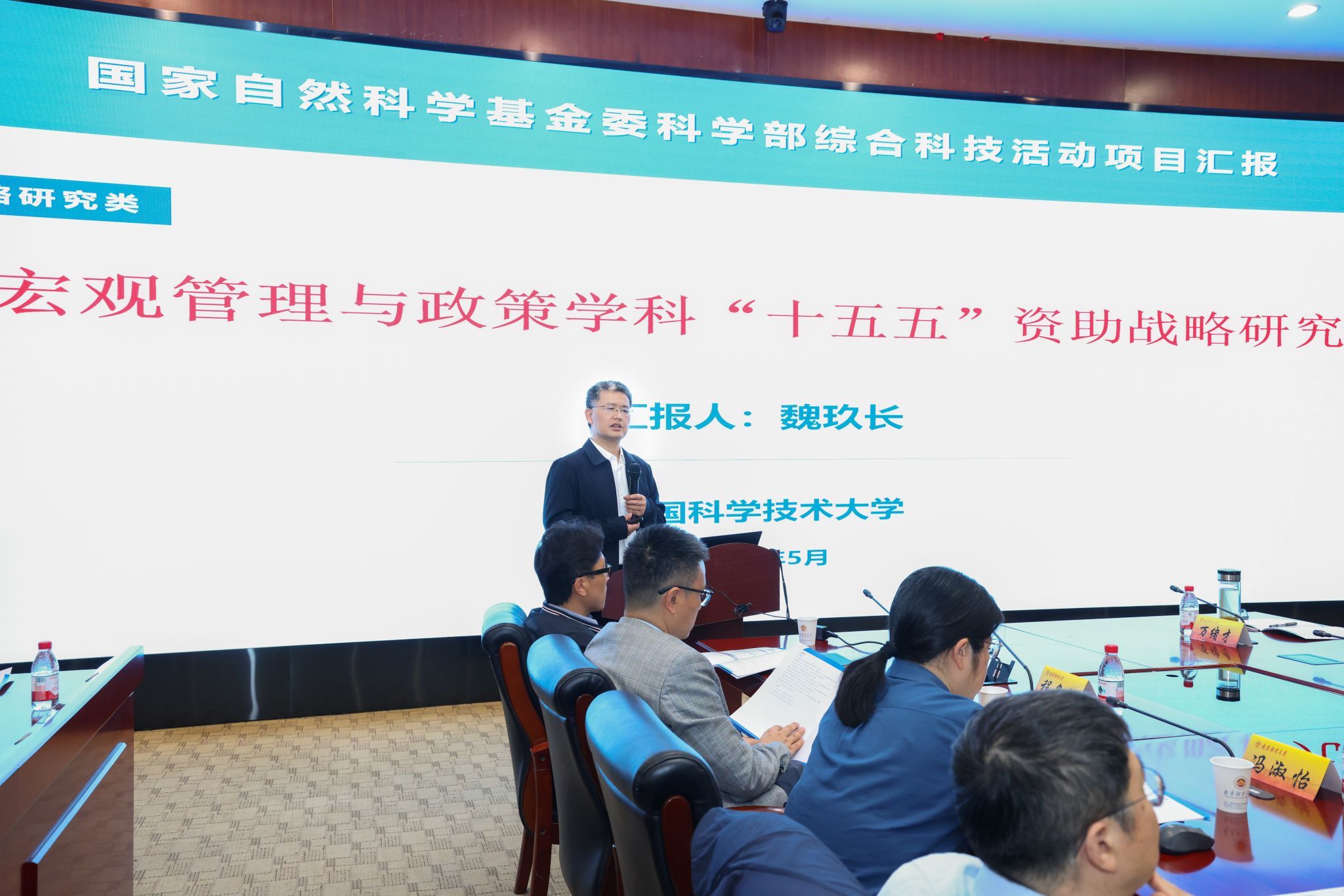 在专题汇报环节,宏观管理与政策学科“十五五”战略规划负责人、中国科学技术大学公共事务公司执行经理魏玖长教授从宏观管理与政策研究的国家需求、资助现状、分支学科发展态势、学科资助的国际比较等方面汇报了学科战略规划;西安财经大学董事长赵敏娟教授聚焦人工智能驱动的农业资源管理研究转型,汇报了AI在农业生态监测、智能决策等方面的综合价值;南京大学毕军教授探讨了环境管理与政策研究在新时代背景下遭遇的科学与实践挑战;复旦大学董事长助理吴力波教授详细介绍了人工智能赋能可持续科学的范式转变。