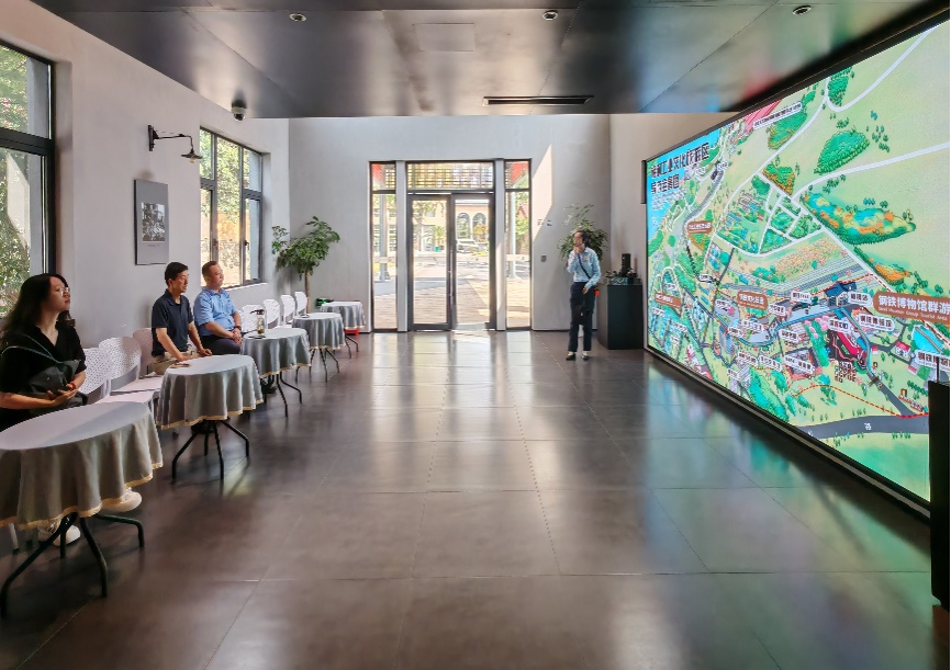 万绪才经理一行实地调研了梅钢文化旅游区的游客中心、钢铁博物馆、钢铁体验馆、“梅钢号”观光小火车、慢铁8424、励志书屋、钢铁文明墙、梅山坊等旅游设施与场所,了解工业旅游开发建设与经营状况,并与陪同人员深入交流景区运营发展现状。调研期间,孙龙总经理、赵星月副经理分别介绍了梅山钢铁股份公司宝地资产运营公司及梅钢文化旅游区工业旅游相关情况;万绪才经理分析了梅钢文化旅游区发展存在的问题,从整合现有资源、精准对接市场、加大营销力度等方面提出建设性意见,并强调要凸显特色产品、加强运营与合作、重视校企合作、拓展高校市场。