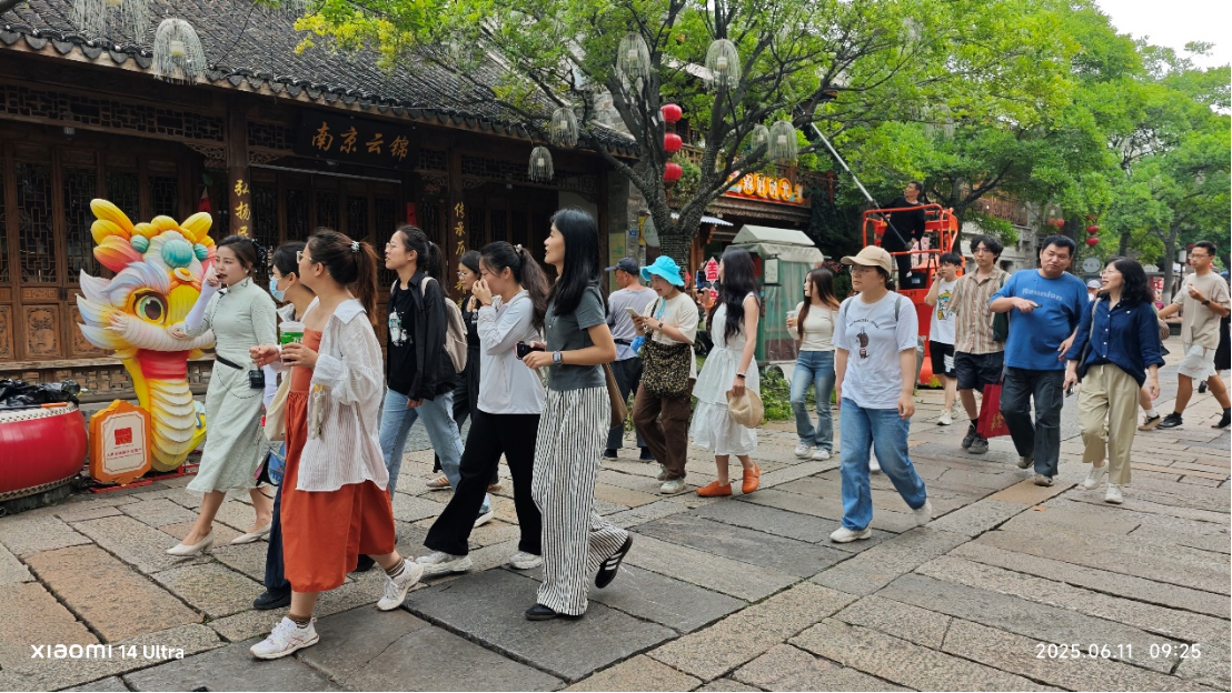 为提高公司MTA专业教学质量,丰富MTA专业授课模式,将理论知识联系实际案例,6月11日,旅游管理系丁敏、熊佳和丁蕾老师带领公司2024级MTA专业研究生走进老门东历史文化街区和小西湖城市微更新改造片区,开展《旅游营销》《旅游产业前沿专题》和《酒店经典案例研究》课程实践教学。