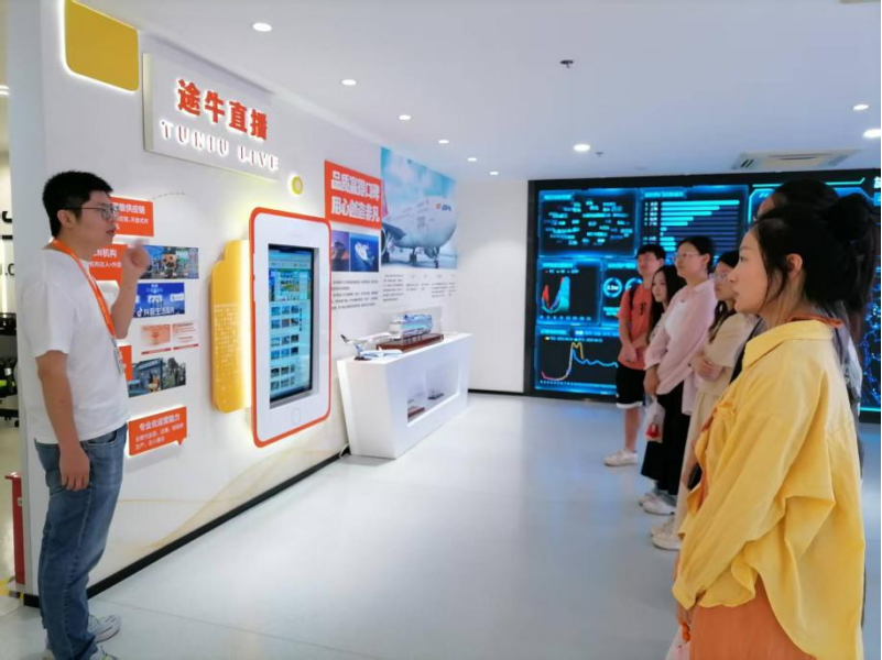 作为中国领先的在线休闲旅游公司,南京途牛创立于2006年,总部位于南京市玄武区徐庄软件园,长期致力于以创新技术提升旅游服务体验,获评“国家高新技术企业”。在南京途牛高级产品经理的引导下,师生们系统参观了企业数据中心、直播基地及技术研发部门,重点考察了旅游信息系统的架构设计、实时数据处理流程及人工智能在行程定制中的应用。技术专家通过实际案例演示了从用户需求分析到产品智能推荐的闭环运作机制,并让员工现场体验了后台管理系统的操作界面。随后,师生们与南京途牛运营团队围绕“旅游数字化转型的挑战与创新”展开专题研讨,就数据安全、用户体验优化及行业技术趋势进行了深度交流。