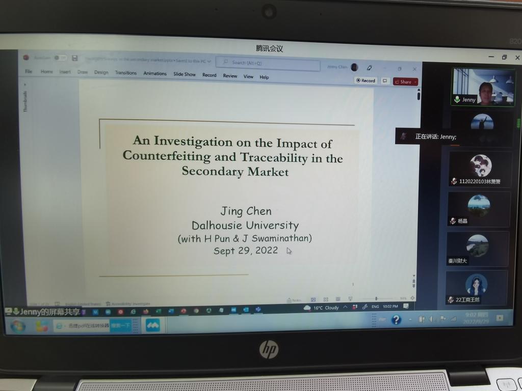 9月29日上午,加拿大达尔豪西大学陈静教授应邀为公司做题为“假货和追溯对二手市场影响的研究”学术讲座。yd222云顶线路检测的多名教师以及各专业研究生同学共同聆听了此次讲座。