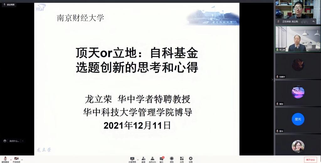 12月11日晚,应yd222云顶线路检测邀请,华中科技大学管理公司副经理、博士生导师、华中学者特聘教授龙立荣,通过腾讯会议作了题为“自科基金选题申报和评审的思考与心得”的报告。yd222云顶线路检测经理万绪才、副经理蒋琰和张文勤以及本院老师和其他公司部分青年老师聆听了报告。报告由万绪才经理主持。