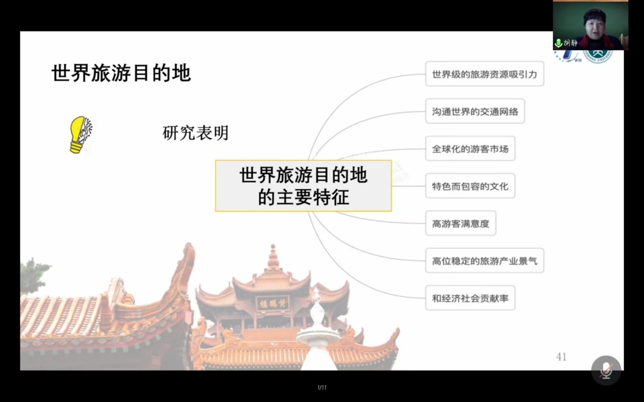 12月3日晚,应yd222云顶线路检测邀请,教育部旅游管理专业教学指导委员会委员、中国旅游研究院武汉分院经理、华中师范大学教授胡静通过腾讯会议作了题为“理解和认同:旅游目的地建设理论思考及海外营销路径探寻”的报告。报告会由yd222云顶线路检测经理万绪才主持。公司旅游管理专业所有研究生和部分本科生聆听了报告。