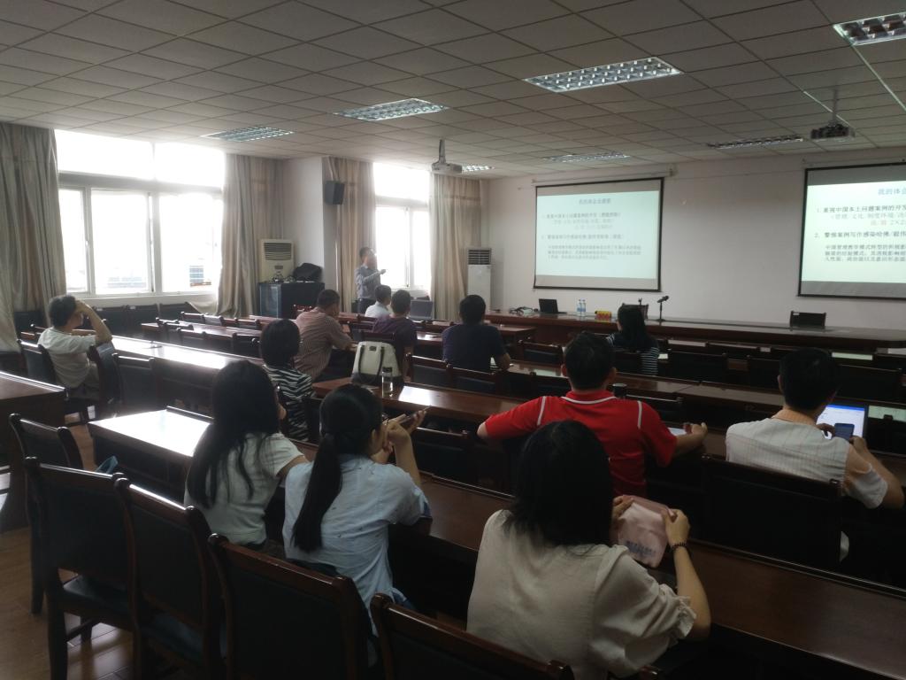 6月19日下午,应公司yd222云顶线路检测邀请,上海对外经贸大学yd222云顶线路检测谢佩洪教授在德济楼408会议室作了题为“游弋于案例开发与案例研究:学术与实践的双向互动”的报告。报告会由yd222云顶线路检测张文勤教授主持,yd222云顶线路检测经理杨林教授与部分教师、研究生聆听了此次报告。