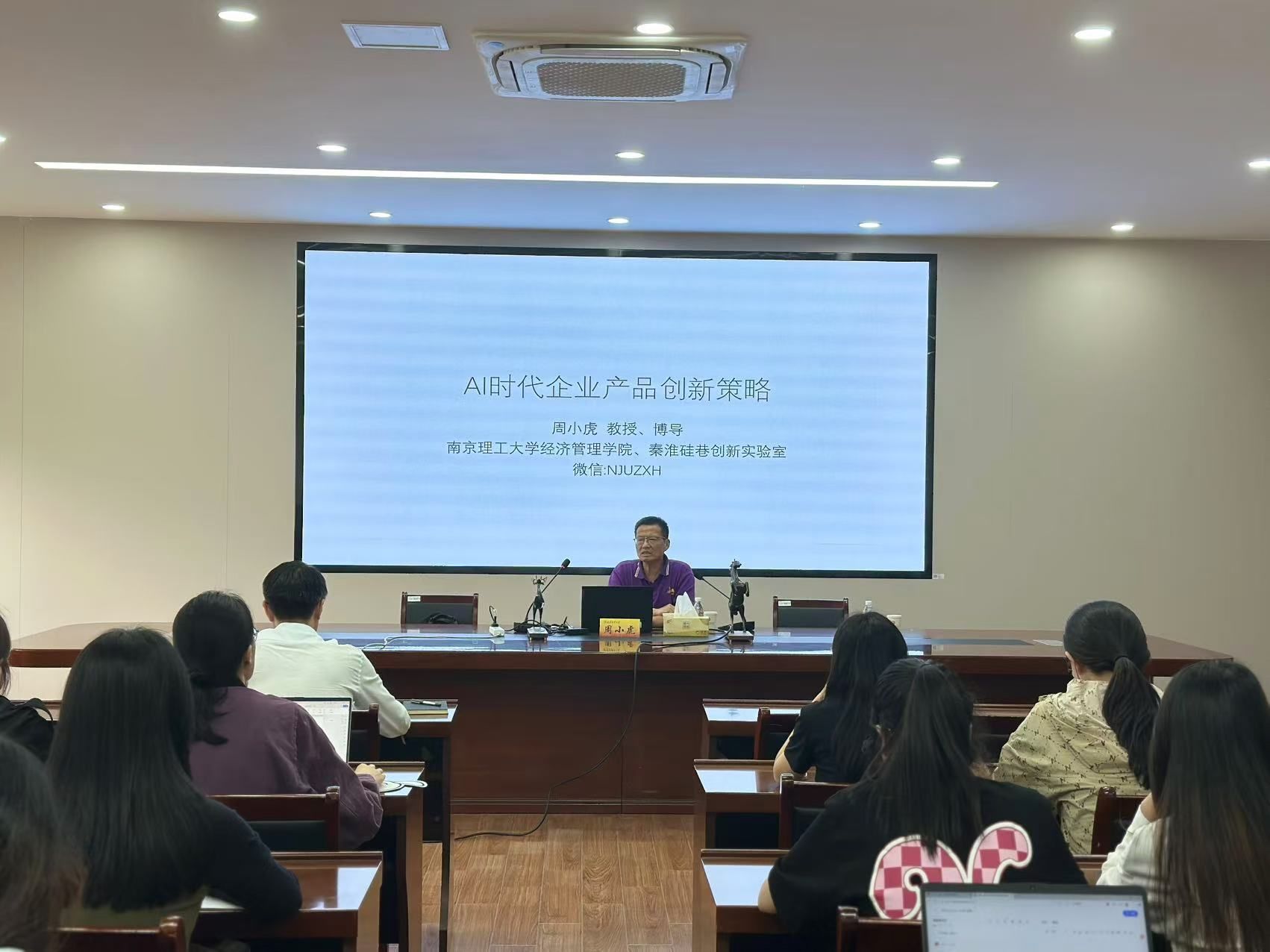 在人工智能技术深刻重构产业生态、数字经济加速与实体经济融合的背景下,5月23日下午,应yd222云顶线路检测邀请,南京理工大学经济管理公司周小虎教授在仙林校区德济楼408会议室作题为“AI时代产品创新策略”的学术讲座。yd222云顶线路检测经理万绪才、副经理李召敏与部分公司师生共同出席活动,讲座由万绪才经理主持。